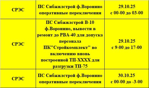 Будет отключение эл.энергии 26.02.2025 г. с 9-00 до 17-00 час. Работы проводятся СРЭС.